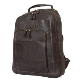 Кожаный рюкзак Gerardo (Жерардо) выполнен из натуральной кожи темно-коричневого цвета. Рюкзак имеет два основных отделения, которые закрываются на молнию. Внутри одного из отделений (ближе к спинке) отделение для мобильного устройства (с диагональю до 15,6 дюймов). Внутри второго отделения два кармана для документов на липучке, карман на молнии и о..